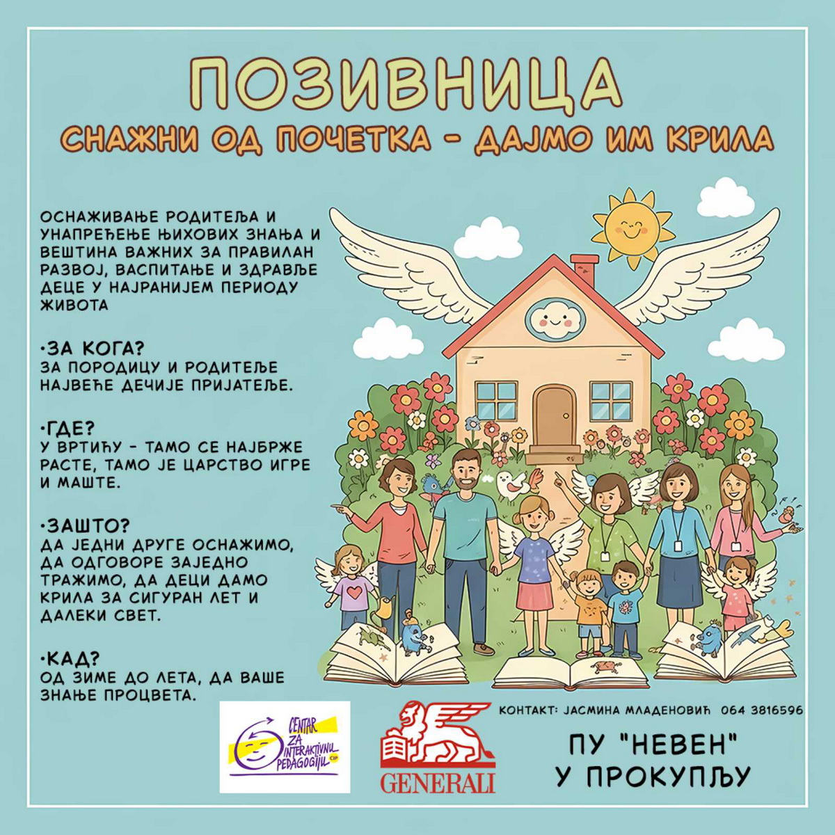 Предшколска установа „Невен“ у Прокупљу реализује програм подршке породици под називом „Снажни од почетка – дајмо им крила!“, намењен родитељима, старатељима и хранитељима деце узраста до шест година. Програм се спроводи у вртићу „Бајка“, у Улици Вељка Миланковића bb. Циљ програма је оснаживање родитеља и унапређење знања и вештина важних за правилан развој, васпитање и […]